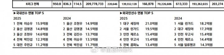 12月30日讯 K联赛今日公布俱乐部薪资支出情况,媒体人苗原在社媒上进行分析: